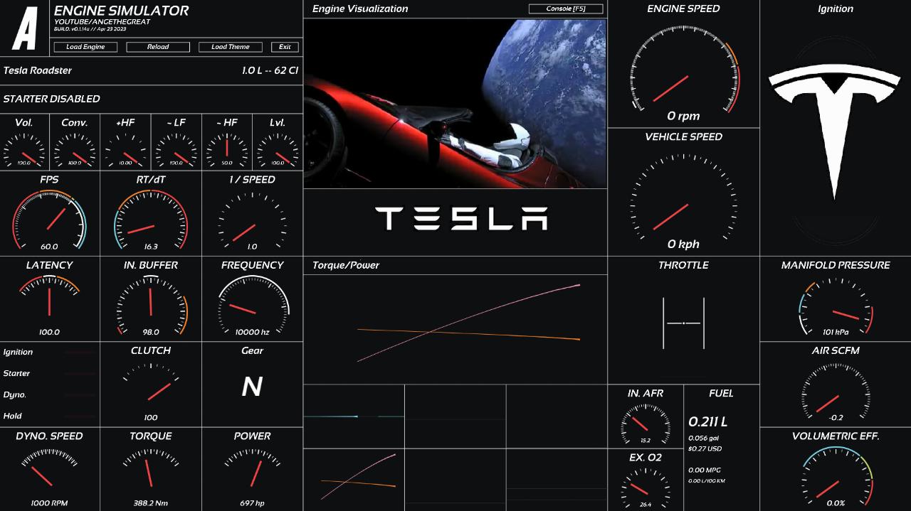 Using only the starter pimped as an electric motor, get in the Tesla Roadster! Instruction: put the 1st gear and p...