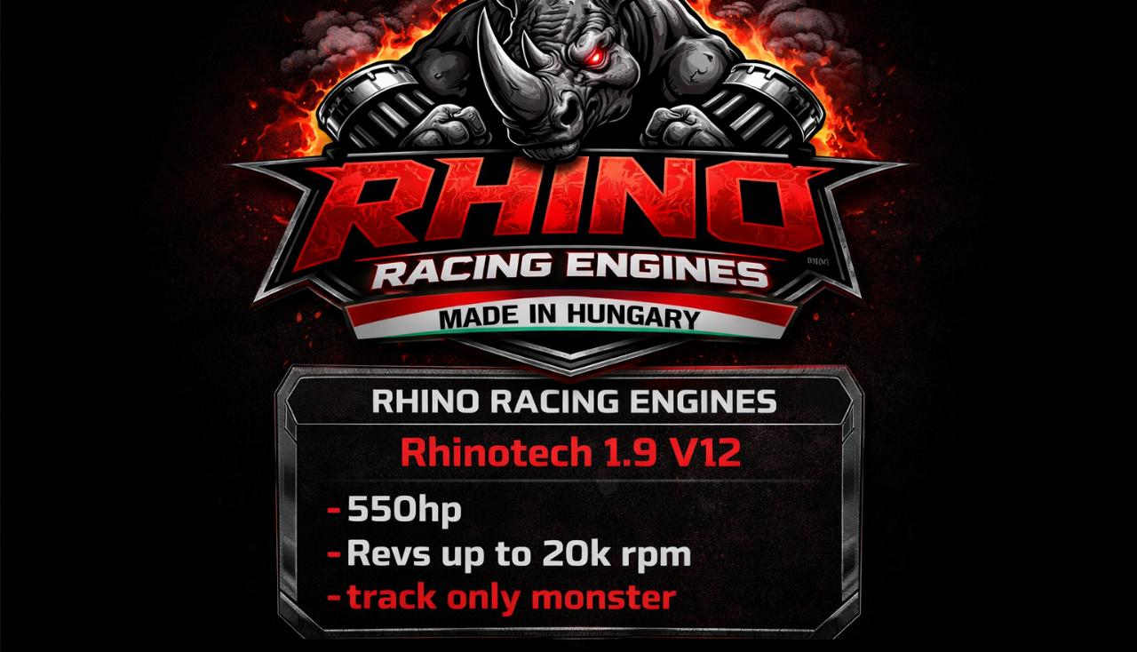 The rhinotech v12 is a ferrari f12tdf motor detuned and way smaller that the og powerplant it is now an f1 inspired...